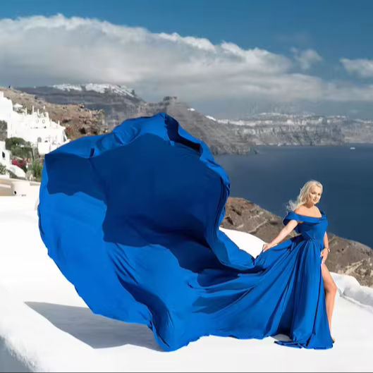 Nouveauté Santorini bleu royal, robe longue sans manches pour femme, séance photo, robe volante fluide