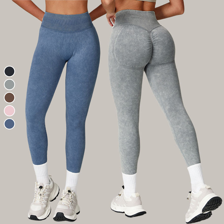 Nouvel Arrivage Leggings Sans Couture Taille Haute Effet Délavé pour Femme, Séchage Rapide, Effet Push-up et Remonte-fesses, pour Course, Sport et Gym en Extérieur