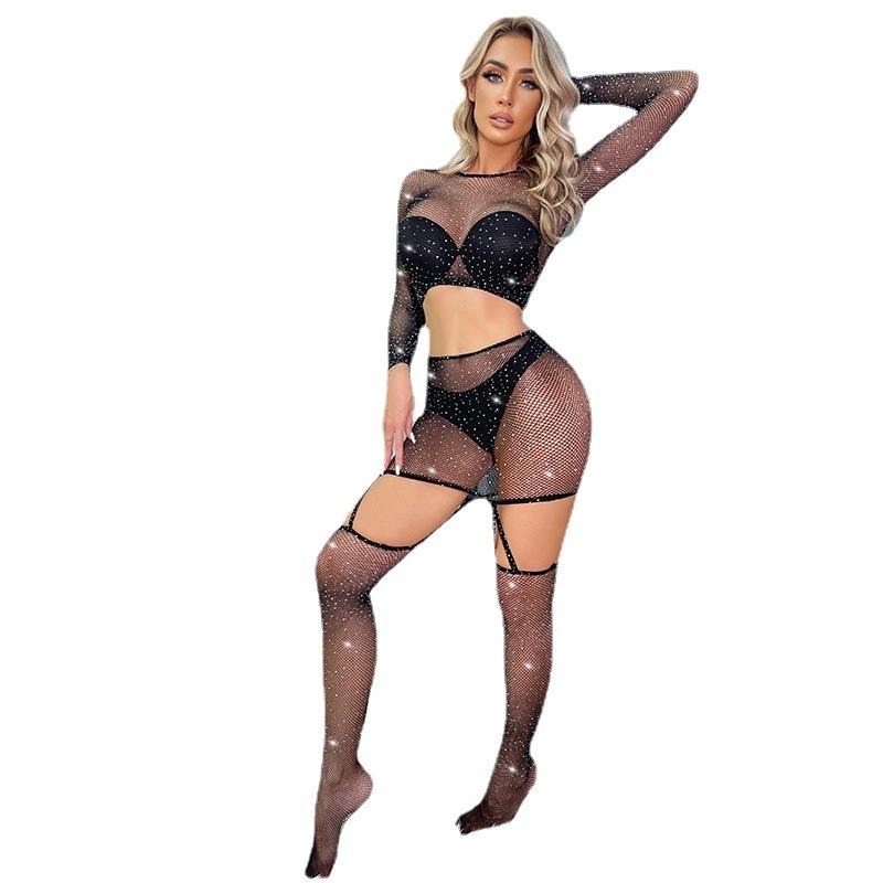 Nouveauté Sexy Bodystockings en résille avec strass Transparent Grande taille Sous-vêtements Femmes matures Lingerie