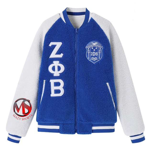 Nouveauté veste Sherpa manches raglan fermeture éclair complète patchs de broderie en sergé Zeta Phi Beta fond flexible vestes ZPB