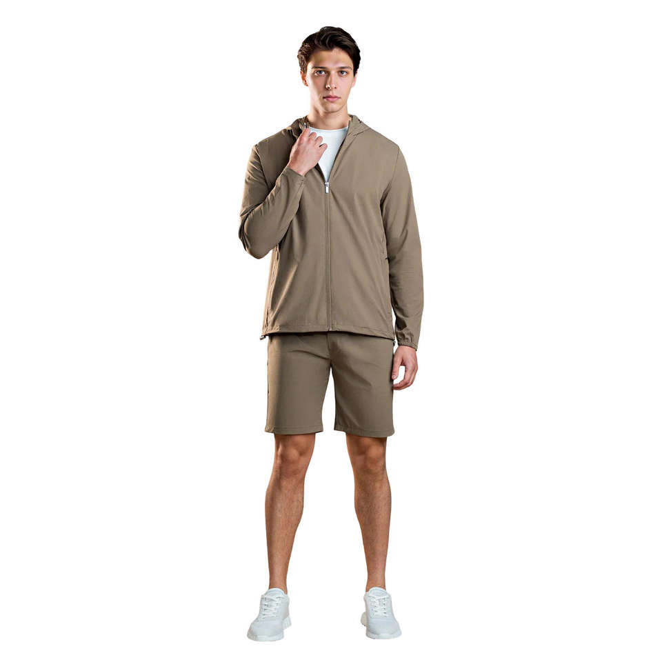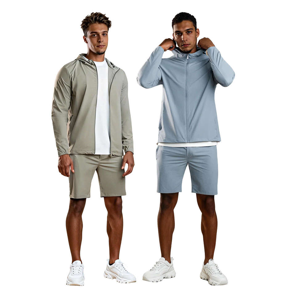 Nouvel arrivage : Ensemble de survêtement court avec tissu technique à séchage rapide, ensemble complet à capuche pour le sport professionnel et la mode masculine