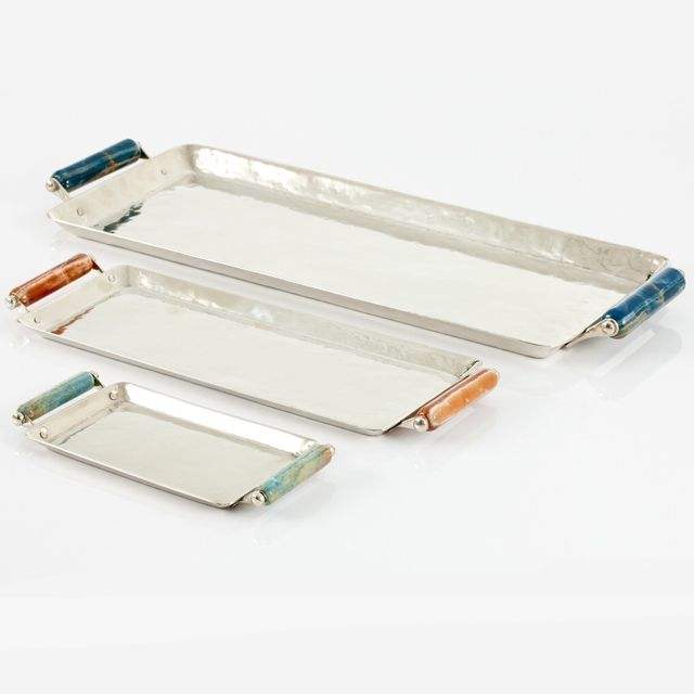 Nouveauté Plateau de service argenté avec poignée Plateau de service en acier inoxydable Passe au lave-vaisselle Cuisine Mariage Restaurant Vaisselle Assiette