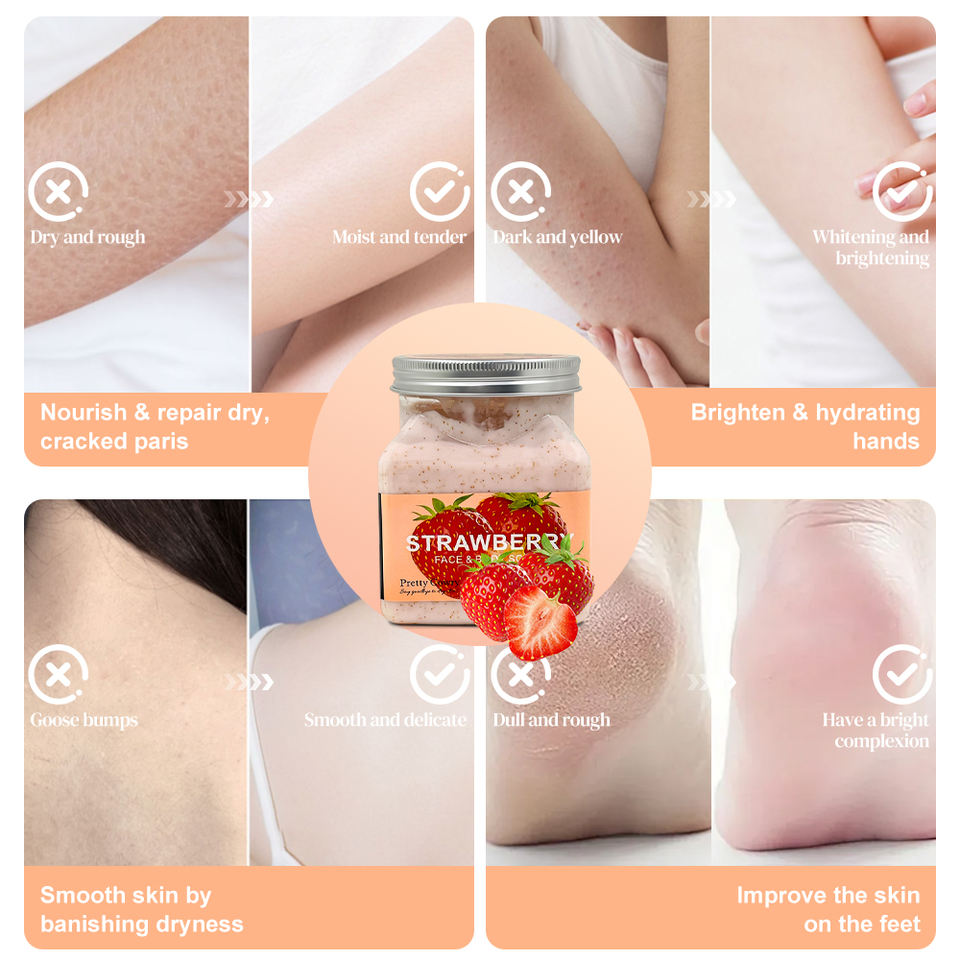 Nouveauté : Gommage corporel SPA pour le soin de la peau, gommage visage et corps à la fraise, gommage corporel naturel aux fruits avec logo