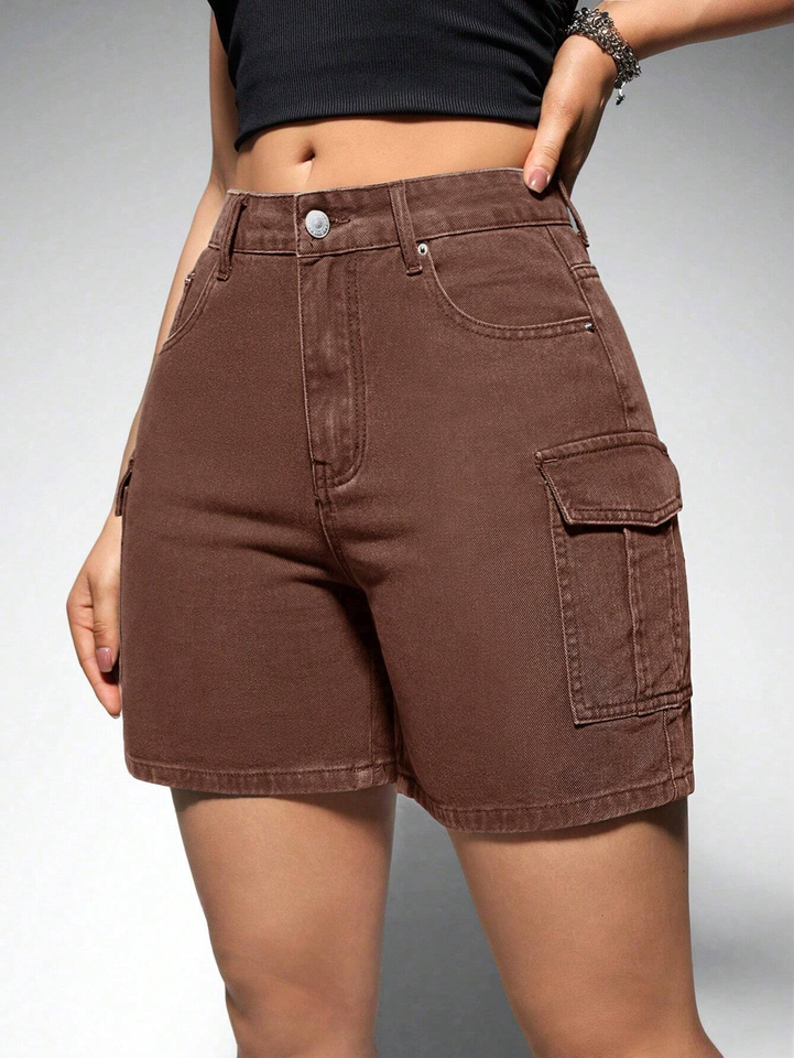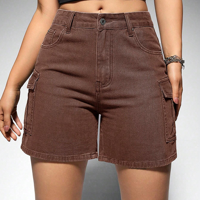 Nouvel Arrivage Short en Jean Cargo pour Femme en Coton Lavé Doux, Style Streetwear d'Été, avec Ceinture à Boucle et Ourlet Design