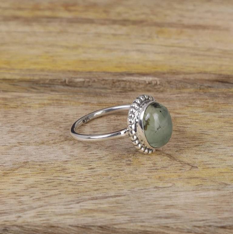 Nom du produit:Bague en argent Prehnite