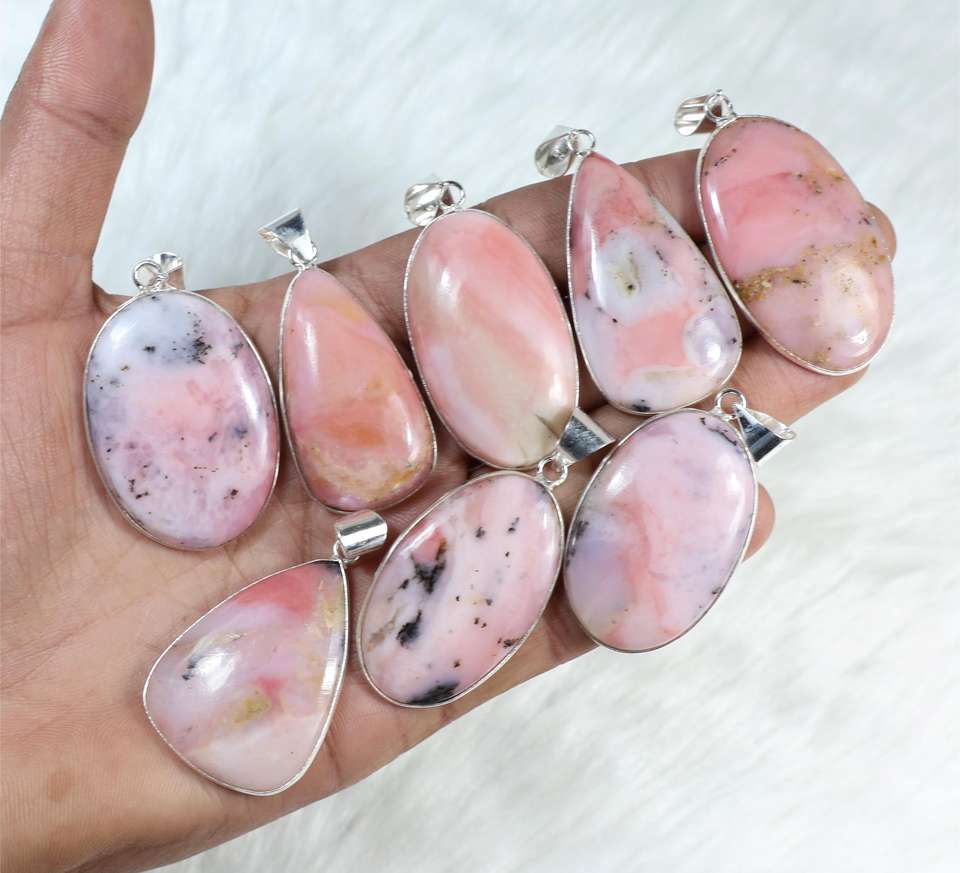 Product Name:Natural Pink Opal Gemstone silver plated pendants