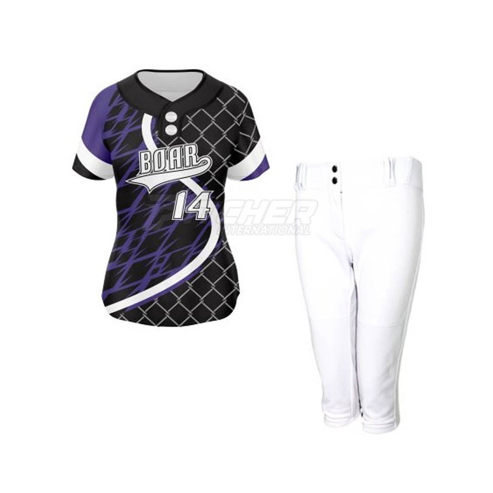 Nouvelle arrivée nom personnalisé imprimé respirant 100% polyester tissu Softball uniformes ensembles meilleur prix