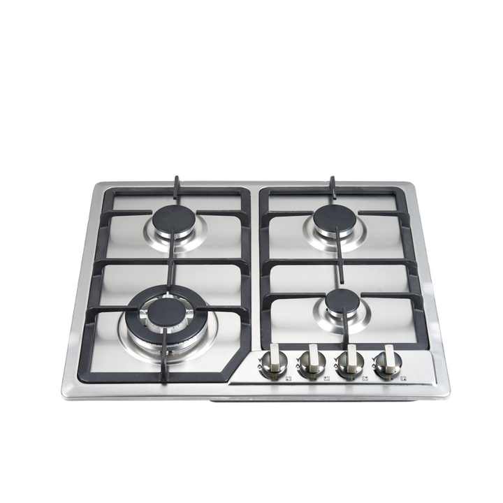 Nouvelle arrivée Table de cuisson à gaz à 4 brûleurs encastrée en acier inoxydable avec batterie en émail et source d'alimentation électrique pour l'extérieur