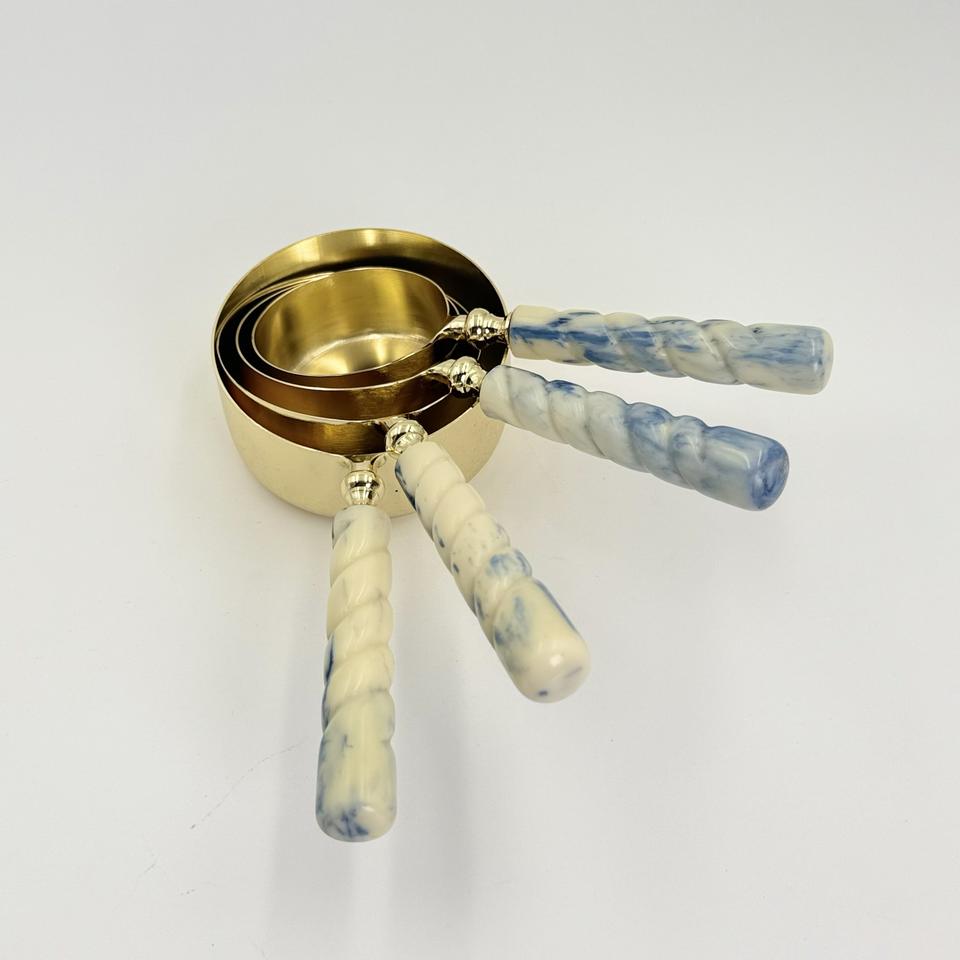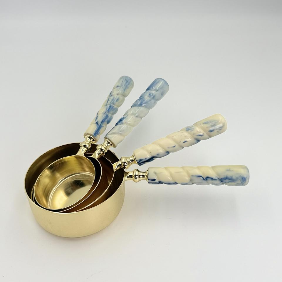 Nouveauté : Tasses à mesurer en acier inoxydable finition or avec poignée en résine colorée, outils de pâtisserie, articles de cuisine à prix réduit