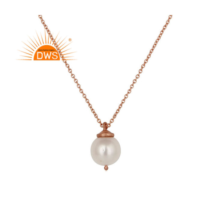 Nouvelle arrivée Collier pendentif en argent sterling plaqué or rose perle blanche naturelle Fabricant de bijoux personnalisé
