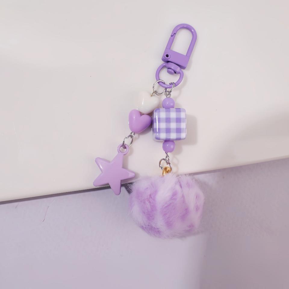 Nouvel Arrivage Porte-clés en métal souple avec petite boule de fourrure, imprimé par sublimation et letterpress, forme 3D, mignon pour femmes, décoration à suspendre pour sacs