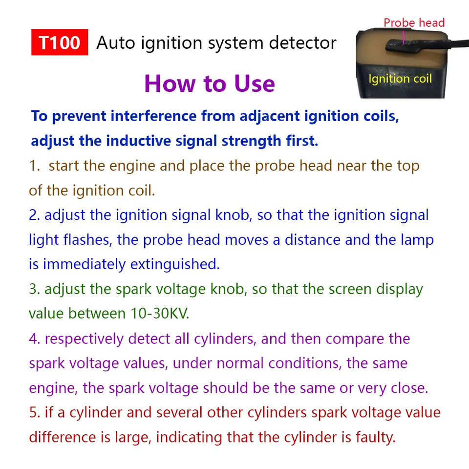 Nouveauté ! Détecteur de système d'allumage automatique T100 pour systèmes d'allumage 12V 24V, détecte le signal d'allumage et la tension d'étincelle