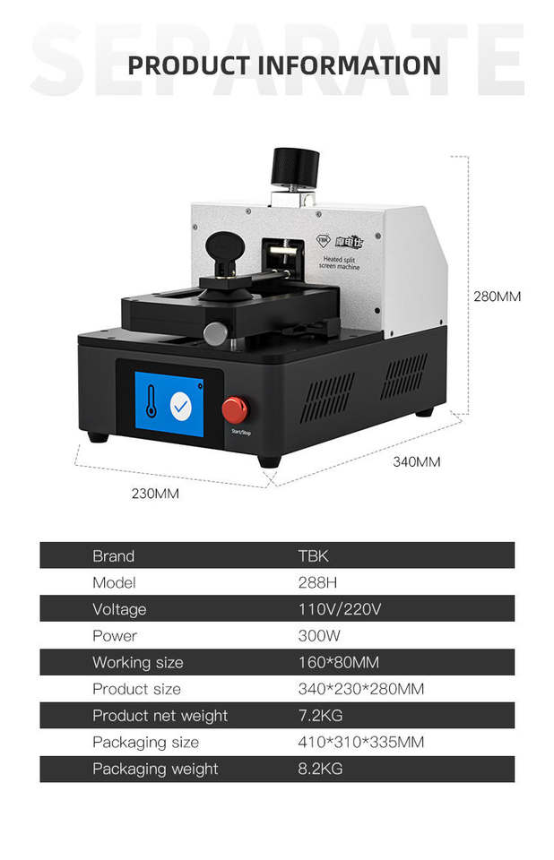 Nom du produit:Machine de séparation d'écran mobile automatique LCD TBK 288H