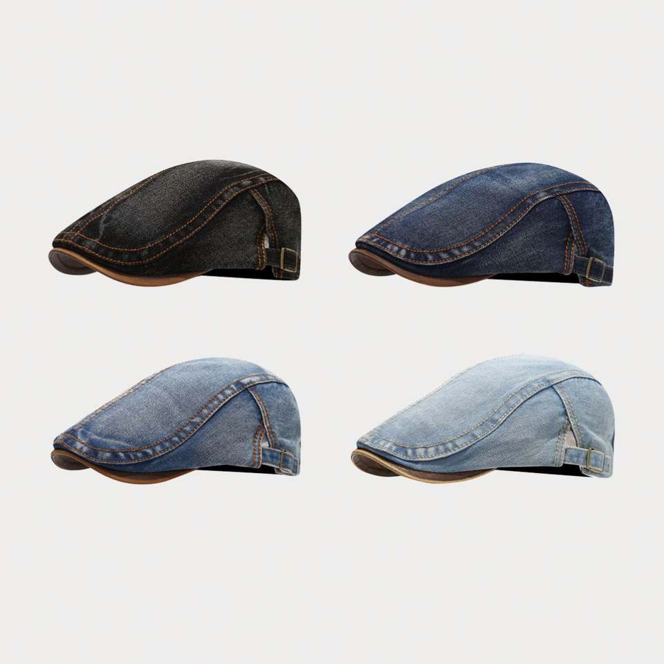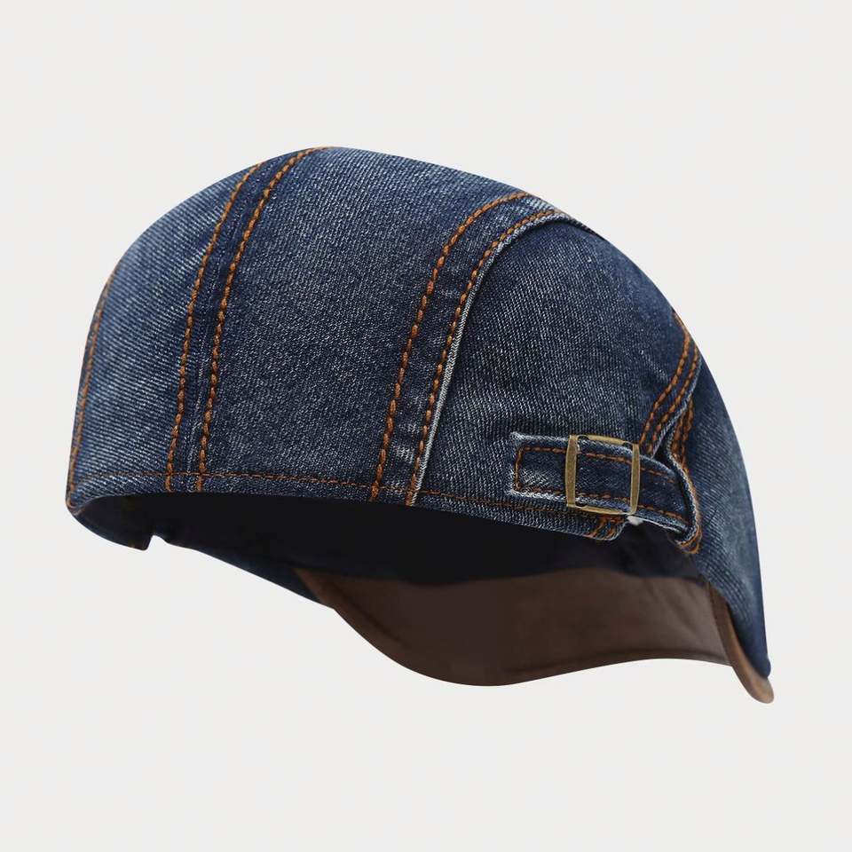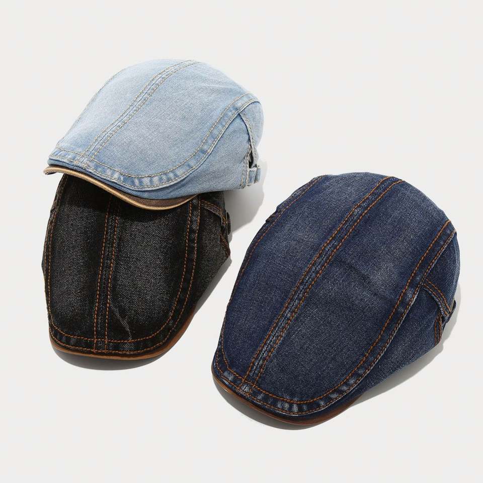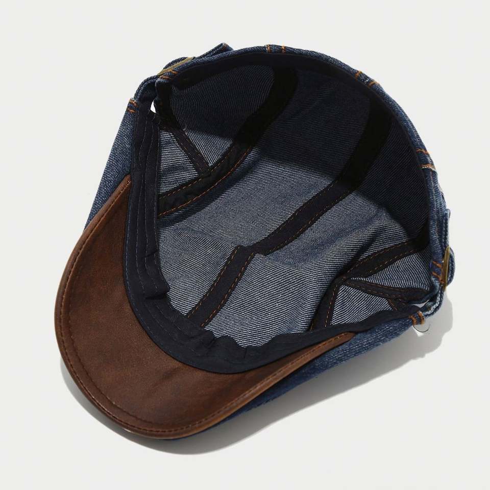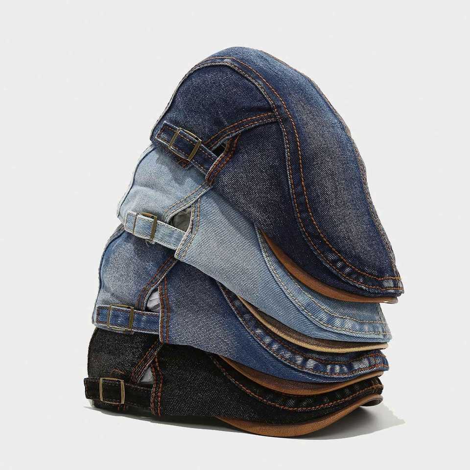 New Arrival Trendy Washed Faded Denim Flat Top Ivy Cap Fashion Women Men Outdoor Casual Retro Beret Hat With PU Leather Bill