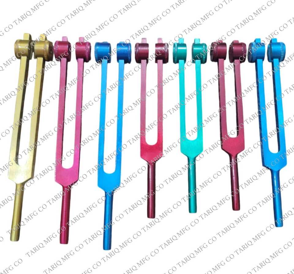 Nouveaux ensembles de diapason pour la guérison et l'usage médical Nouvelles couleurs avec marteau en caoutchouc et emballage TARIQ MFG CO Marque CE ISO