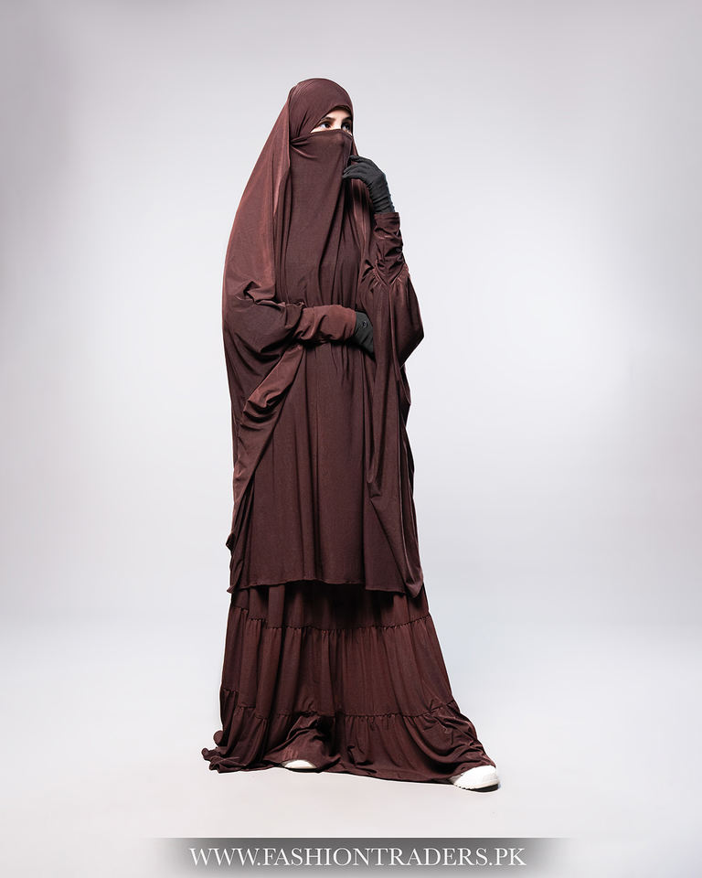 Product name:Two Piece Jersey Sleeves Jilbab With Ruffle Skirt