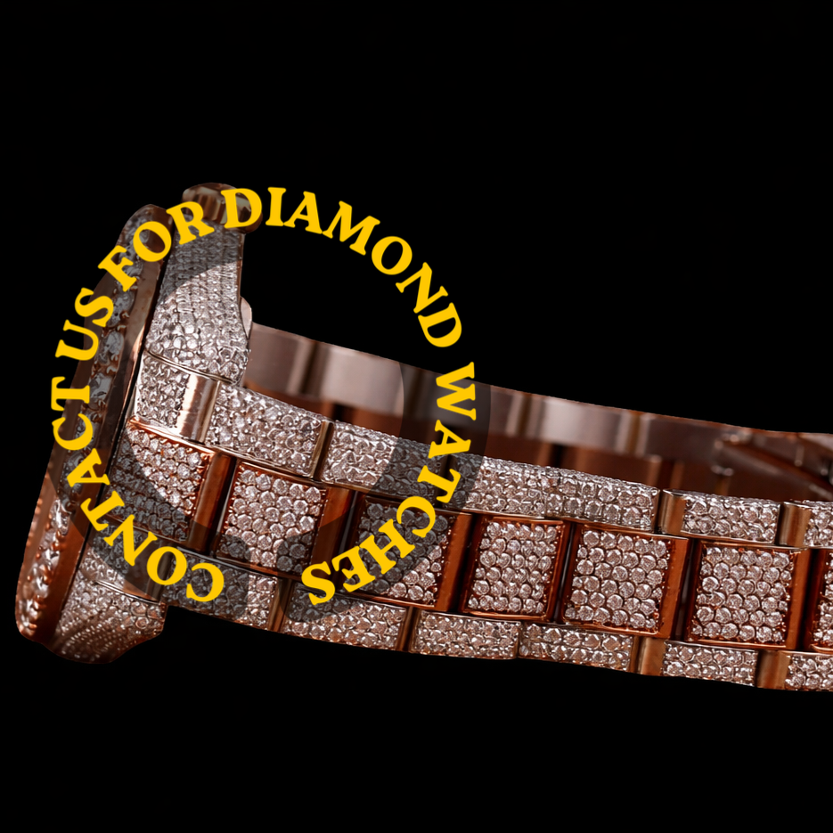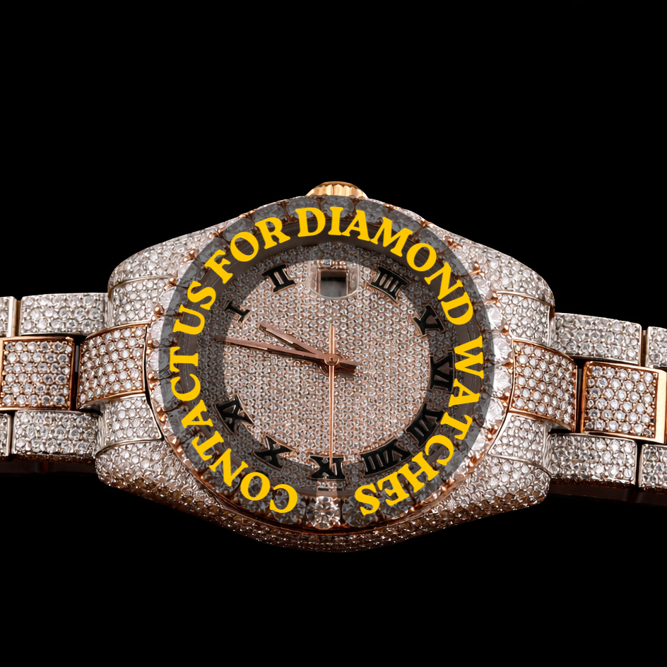 Nouvelle Arrivée Montre Homme de Soirée de Marque Hip Hop à Cadran en Verre Quartz avec Chiffres Romains, Design Personnalisé Bicolore et Diamants Moissanite