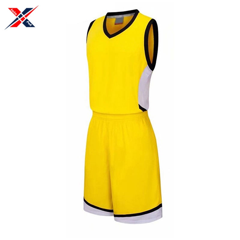 Nouvel arrivage d'uniforme de basket-ball unisexe jaune et noir imprimé de logo personnalisé bonne vente ensemble de vêtements de sport pour adultes option grande taille