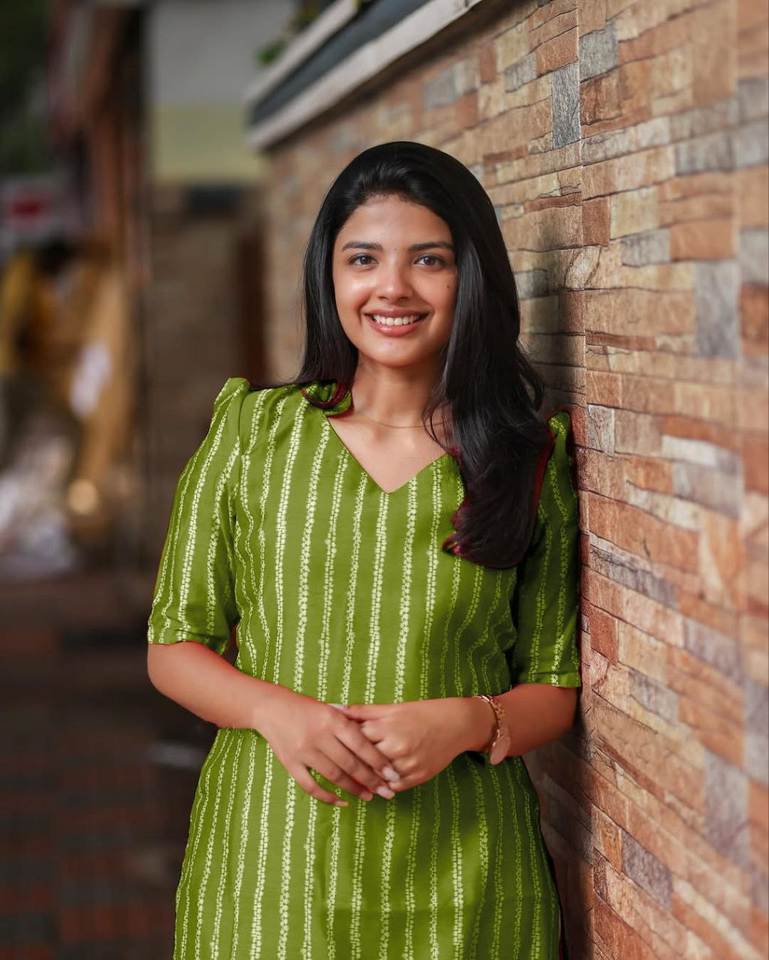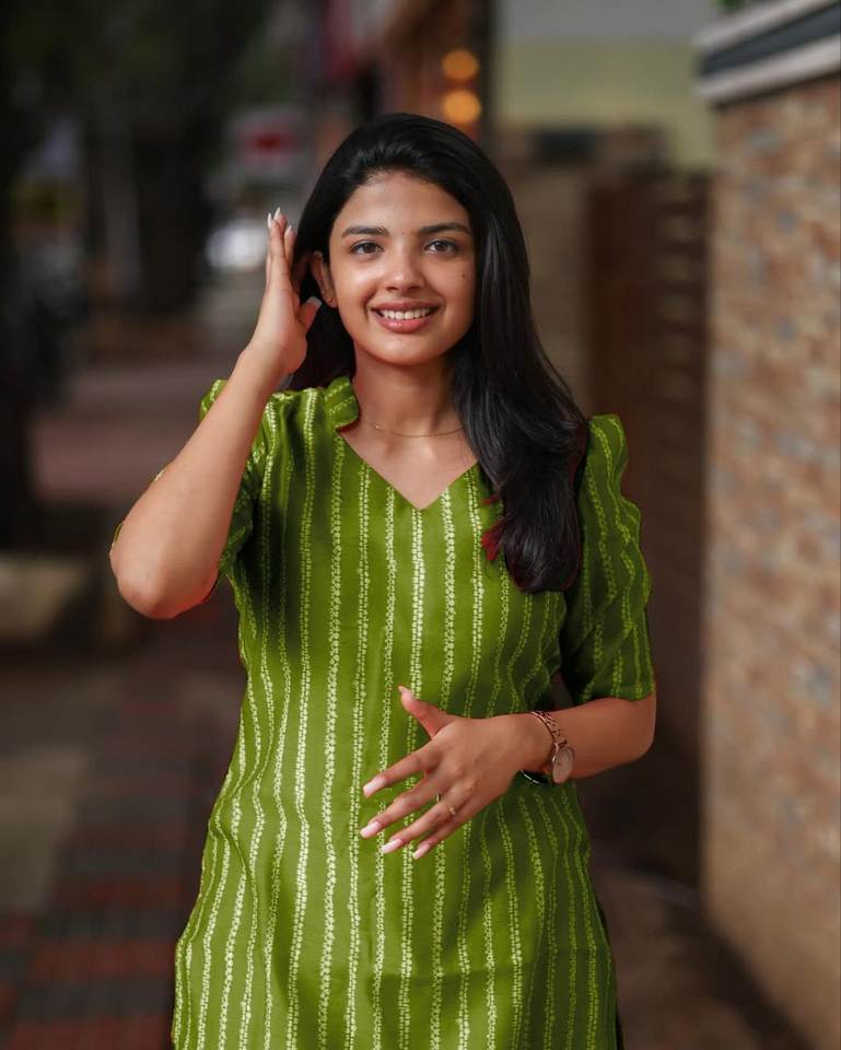 Kurti à col en V avec rayures vertes | Kurta de coupe droite en coton décontracté pour femme | Tunique ethnique d'été