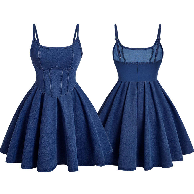 Nouvel arrivage de robe d'été en denim lavé pour femmes avec bandoulière fine coupe Aline décontractée et confortable