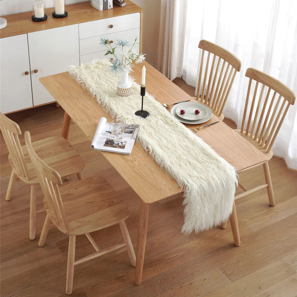 Nouveauté Chemins de table en velours blanc pour mariage Chemin de table en fourrure longue pour événements