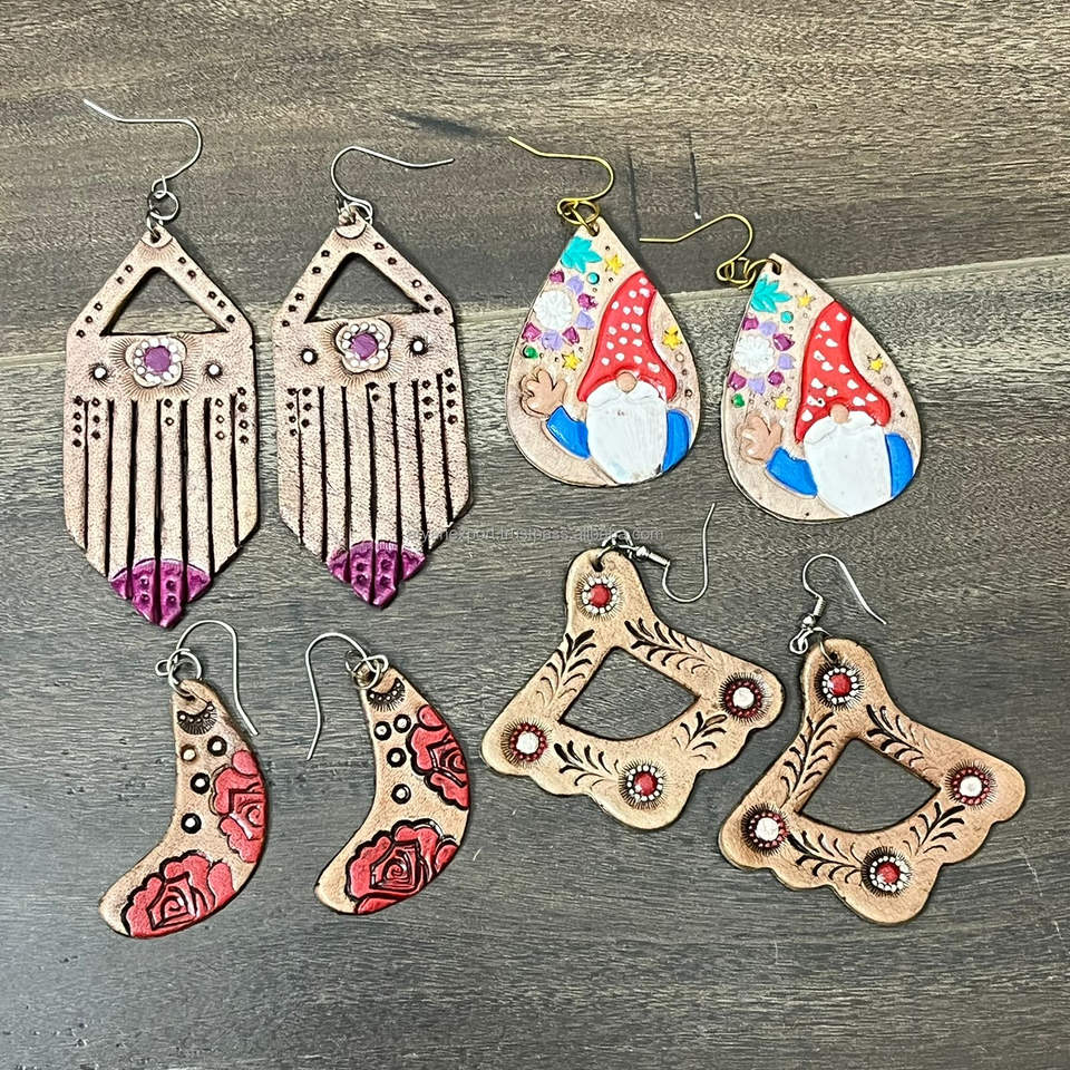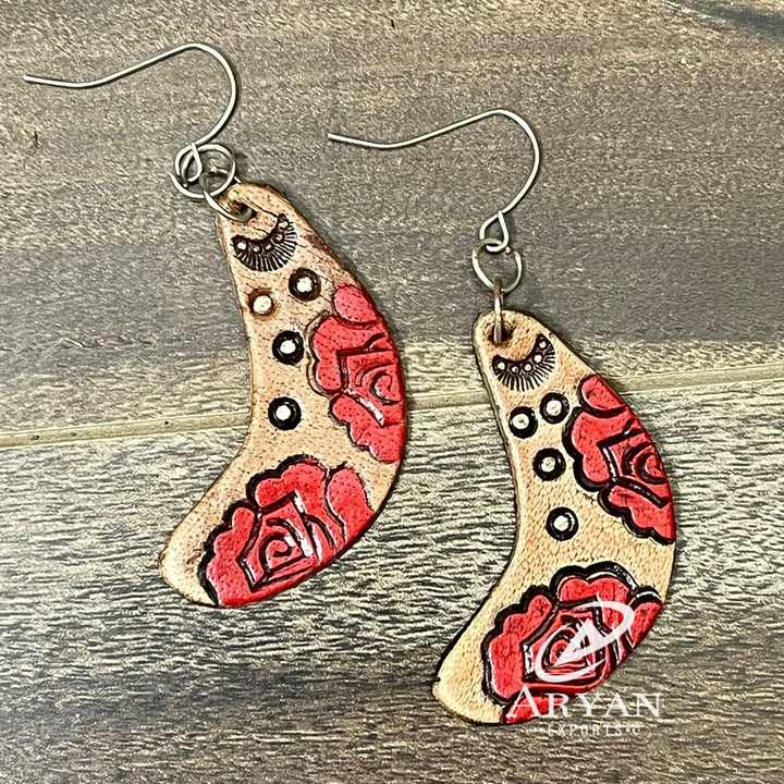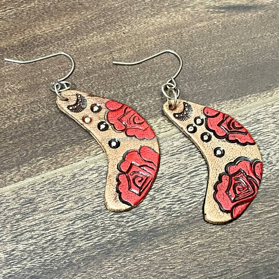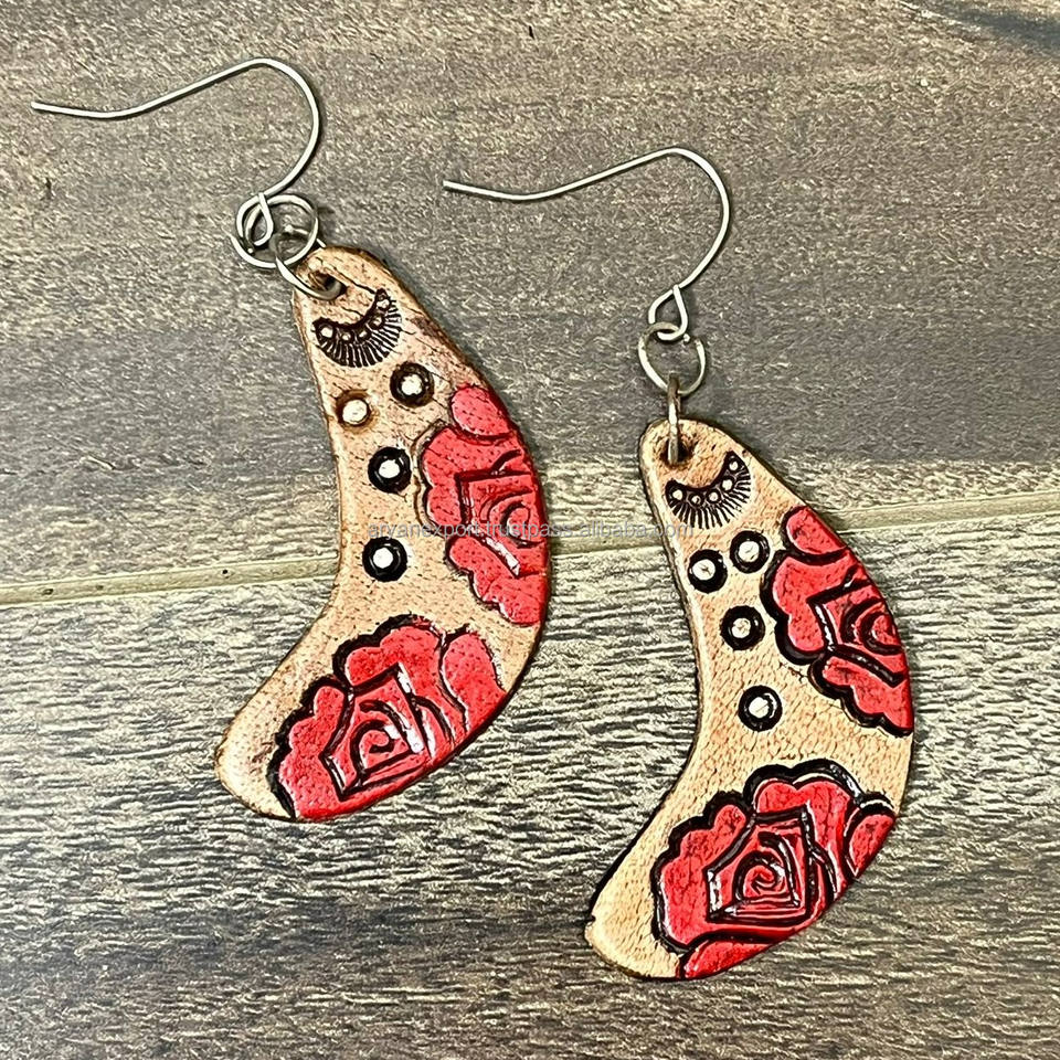Boucle d'oreille Western de fleur de femmes en cuir tassé