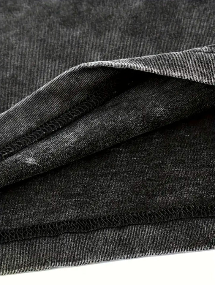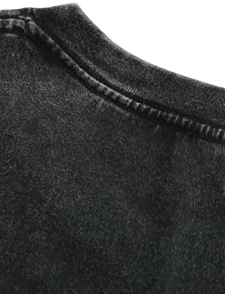 New Arrival Wholesale 100% Cotton Men's Solid Knitted Acid Washed Black T-Shirts Front Customer Printed Short Sleeve Regular Fit