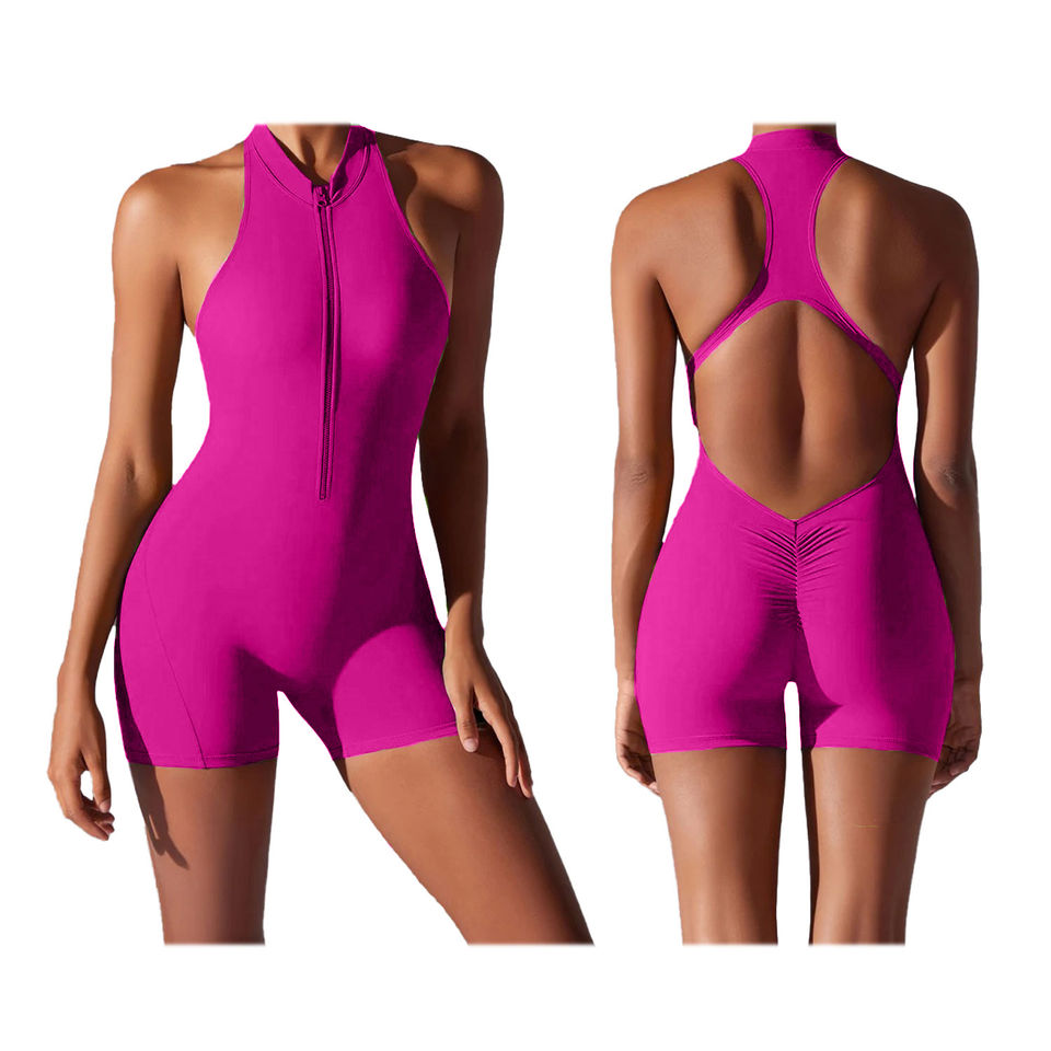New Arrival Women's Fitness Sports Gym Workout 2-Piece Set Solid Pattern Backless Yoga Jumpsuit Wholesale Fitness Clothing