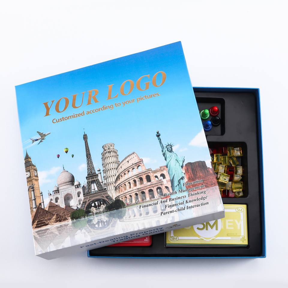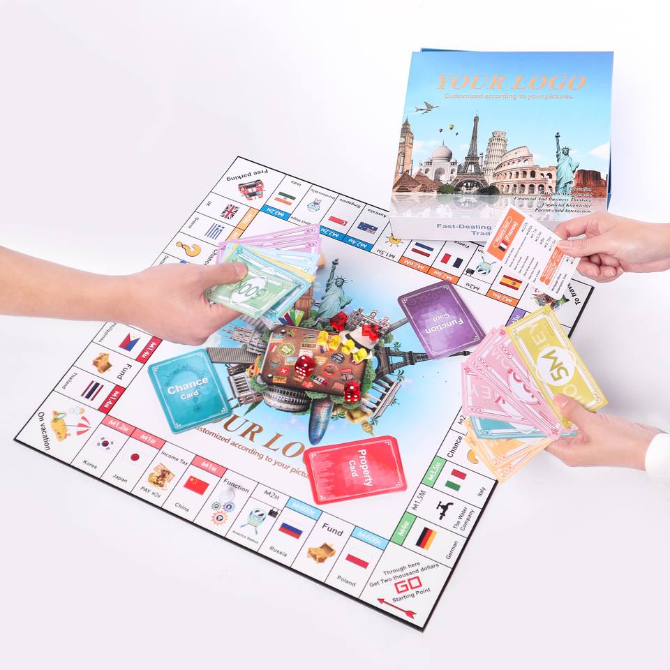 Nouveauté Vente en gros Echantillon gratuit OEM/ODM Jeu de société Logo personnalisé Monopoli Crowdfunding juego de mesas Jeu de société en Gamef KS