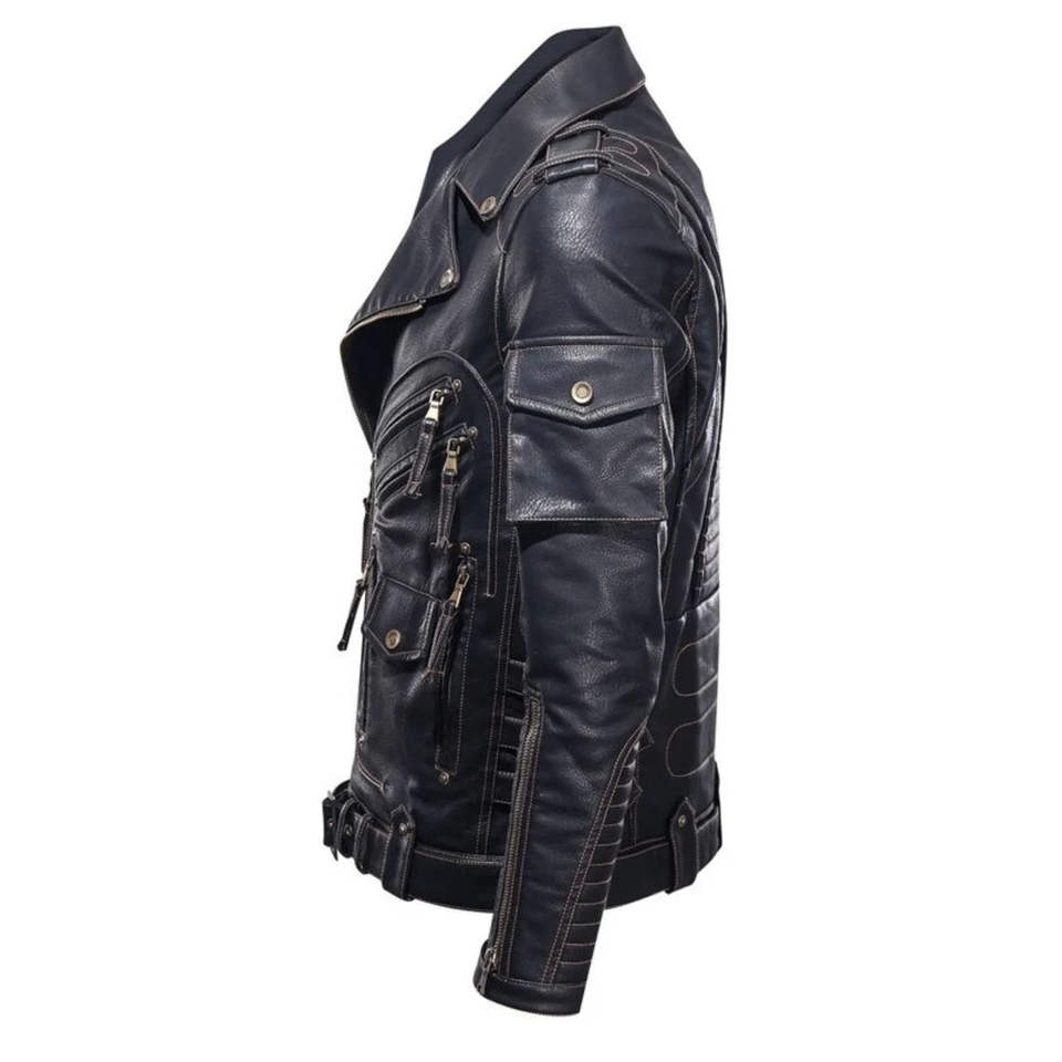 Nouvelle arrivée, vente en gros, veste en cuir véritable noire de style racer pour homme