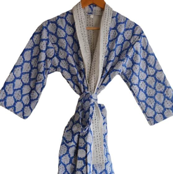 Nouvel arrivage d'hiver de veste de travail imprimée à la mode Kantha à manches longues unisexe coût avec ceinture nouveauté femmes Vintage Kantha Kimono
