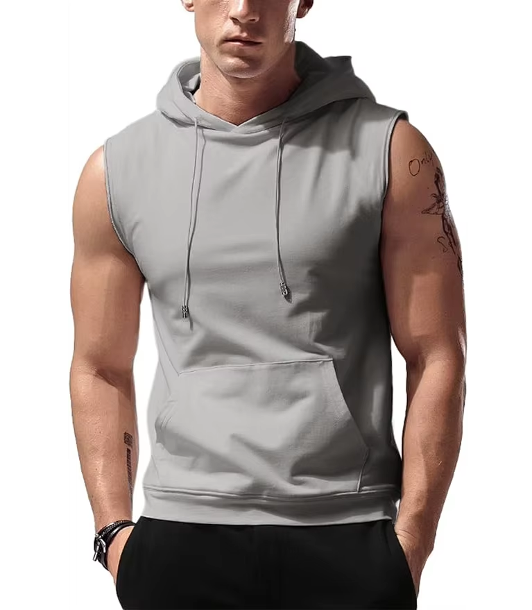 Nouveauté : Débardeurs à capuche pour hommes, sans manches, pour la salle de sport, entraînement musculaire, sweat-shirts, 100% coton, séchage rapide