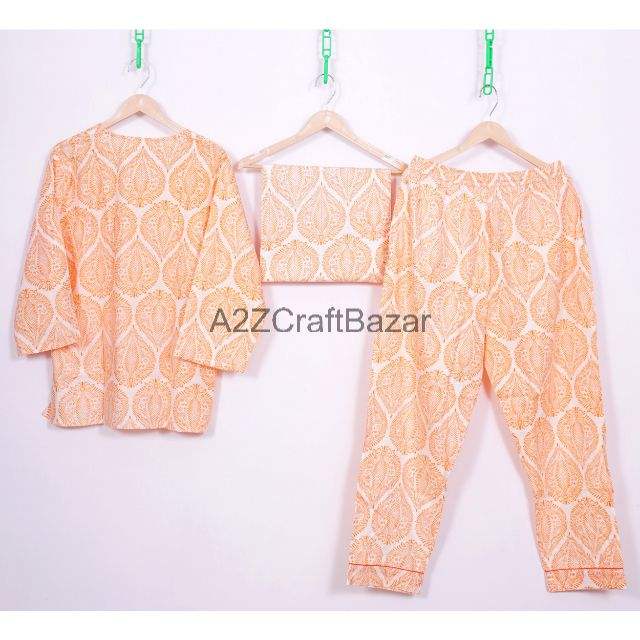 Pyjama de nuit en coton imprimé numérique à fleurs indiennes pour femmes avec logo avant 100% coton