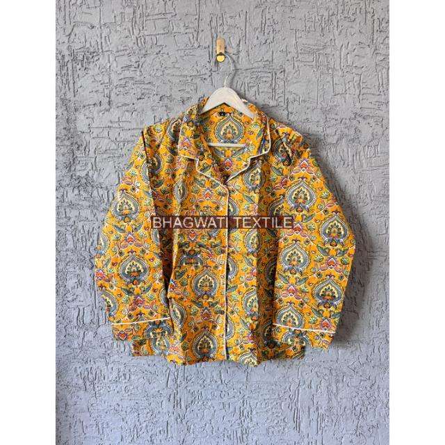New Arrival Women's Cotton Long Pajama Set Colorful Floral Print Night Sleep Wear Hand Block Printed Thermal Hand-Women's