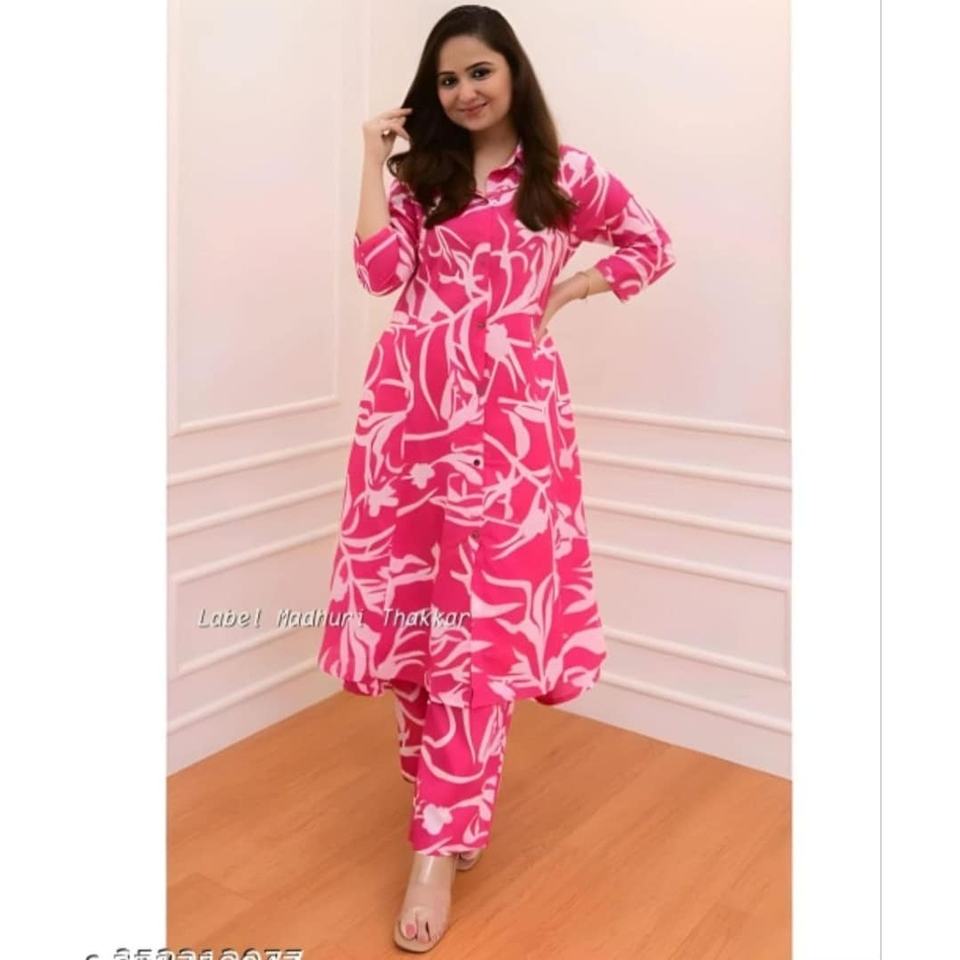 New Arrival Women's Pink Cotton Printed Top Pant Set