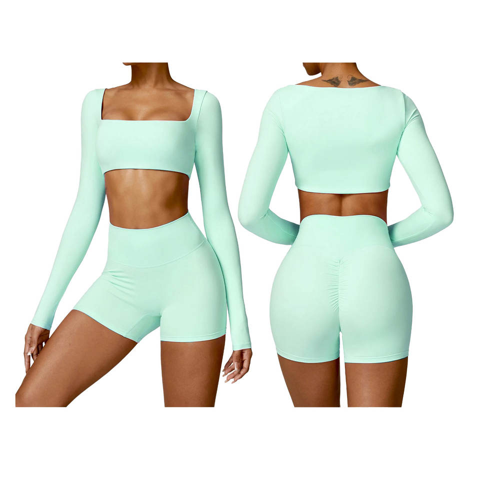 Keywords:Custom Logo Women Long Sleeve Bra Shorts Set