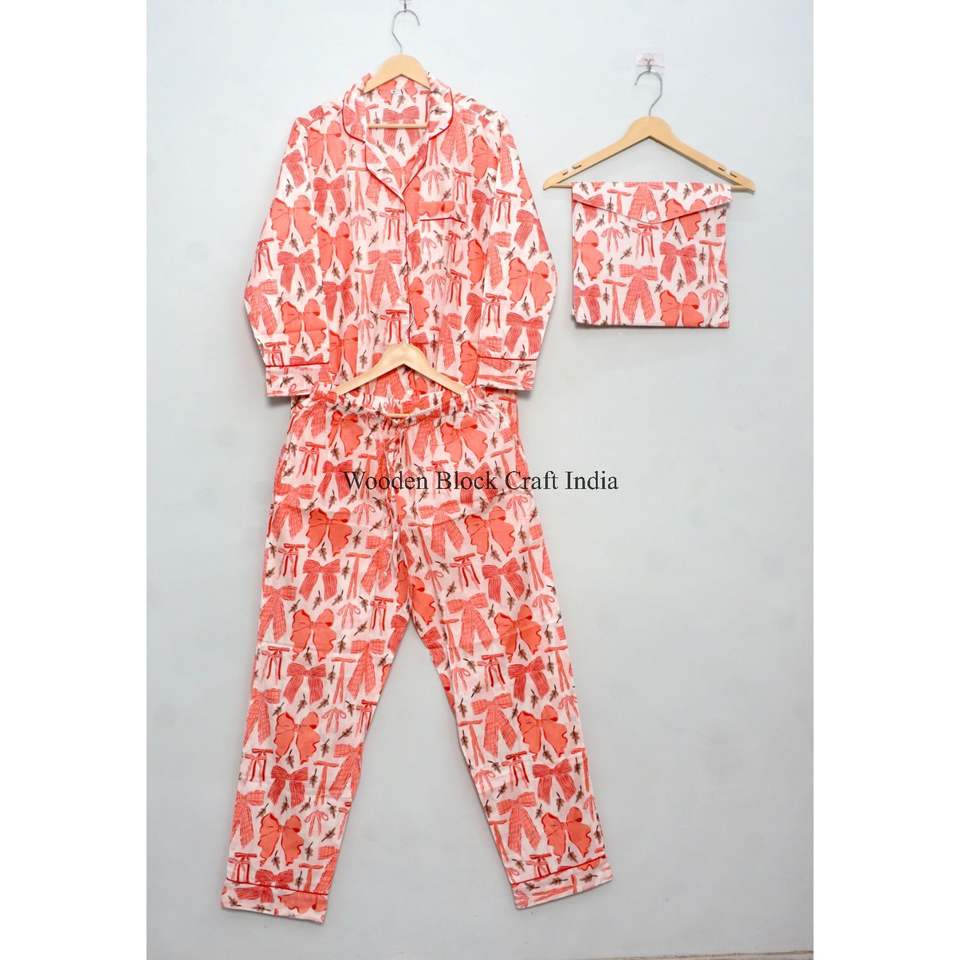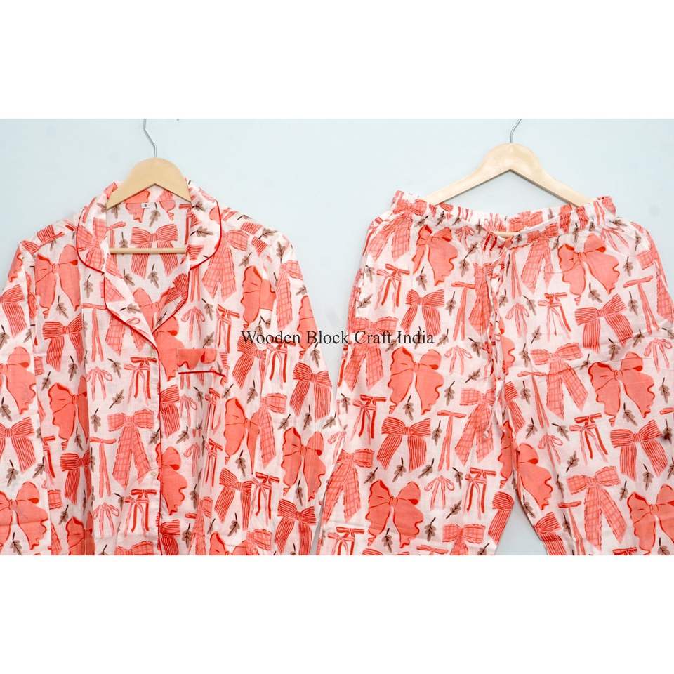 Nouvel arrivage : Ensemble pyjama d'été 100 % coton imprimé à la main, mignon et simple, doux, léger et confortable pour femme