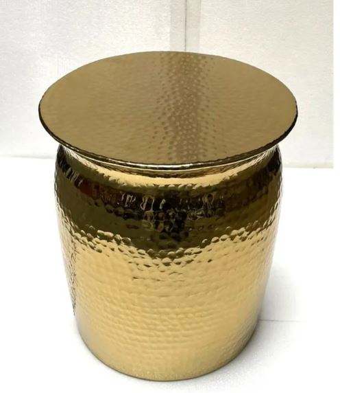 Table d'appoint martelée à tambour avec tabouret de finition dorée table basse pour la décoration intérieure meubles de salon de chambre à coucher Nouveauté