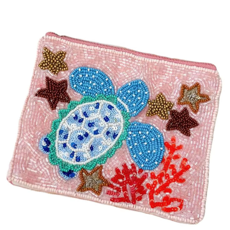 Nouveauté : porte-monnaie tortue multicolore perlé, design artisanal brodé, mini sac carré à fermeture éclair, excellent choix