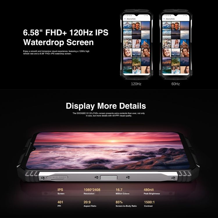 Nouvelles arrivées 2024 DOOGEE S110 téléphone robuste 12 Go + 256 Go 6.58 pouces Smartphone Android téléphone portable 4G étanche