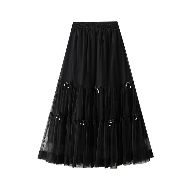 Nouveautés A-ligne jupe mi-longue pour femme demi-longueur jupes tutu plissées à taille haute de couleur unie
