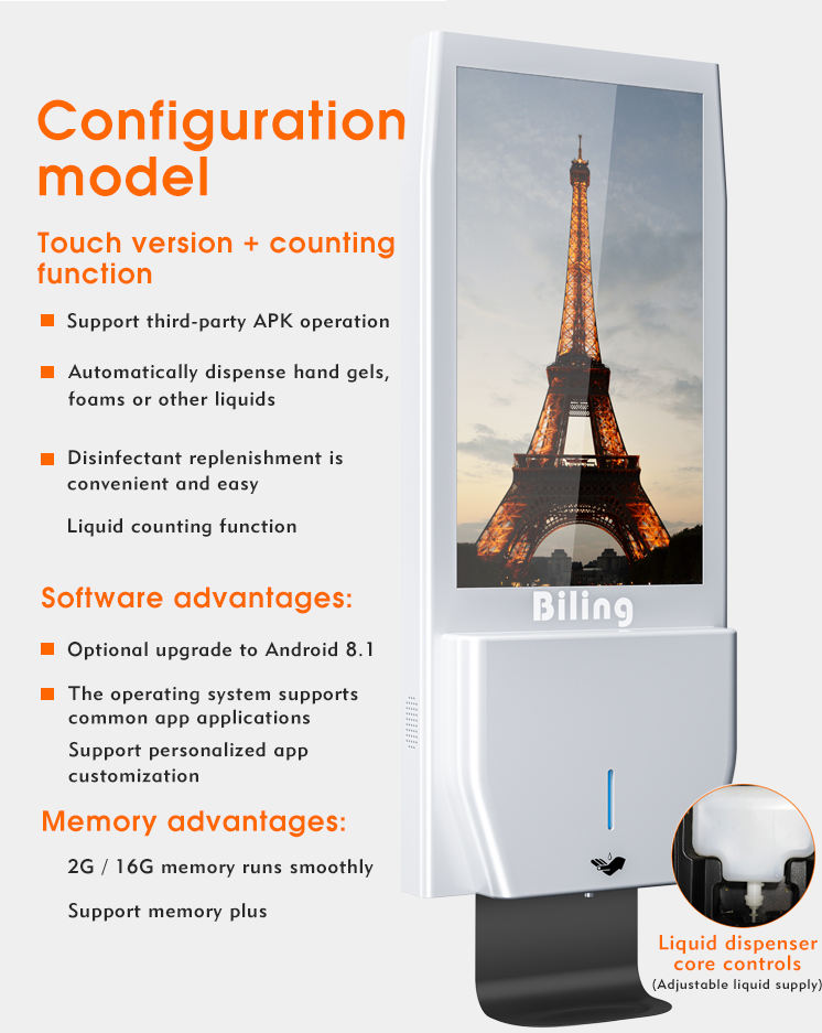 Kiosque multimédia avec distributeur automatique de désinfectant pour les mains, écran numérique de publicité, nouvel arrivage de 2020