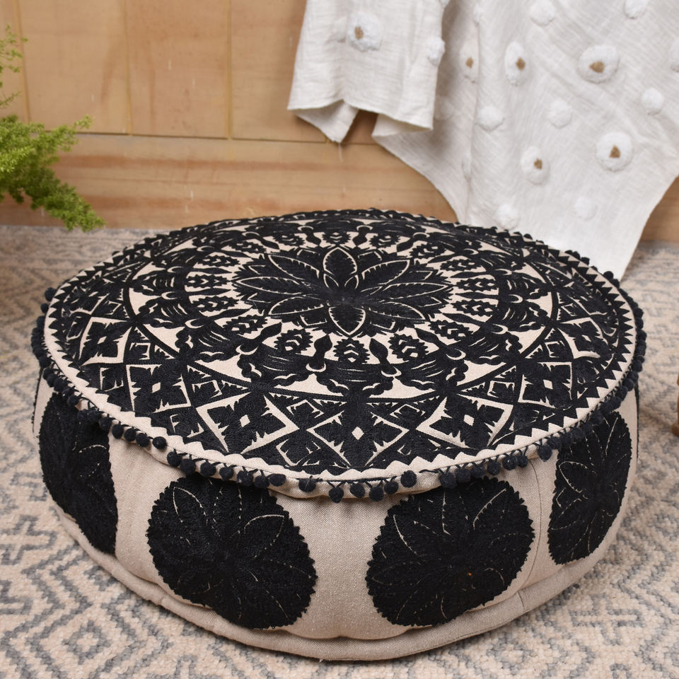 Tabouret rond brodé noir pour méditation, style bohème, nouvel arrivage, couverture, sol, grand salon, pour la maison, nouveauté 2020
