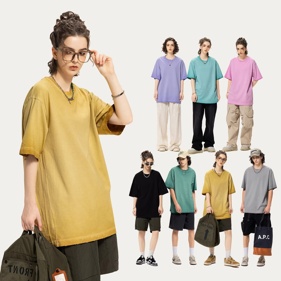 Nouveautés T-shirts personnalisés en coton 100% 320 GSM, couleur unie, effet vieilli, coupe ample, lavage à l'acide, pour hommes