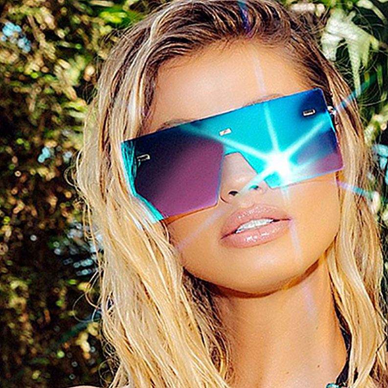 Nouveautés Mode Lunettes de soleil carrées surdimensionnées sans monture à verres dégradés avec logo personnalisé UV400 pour femmes