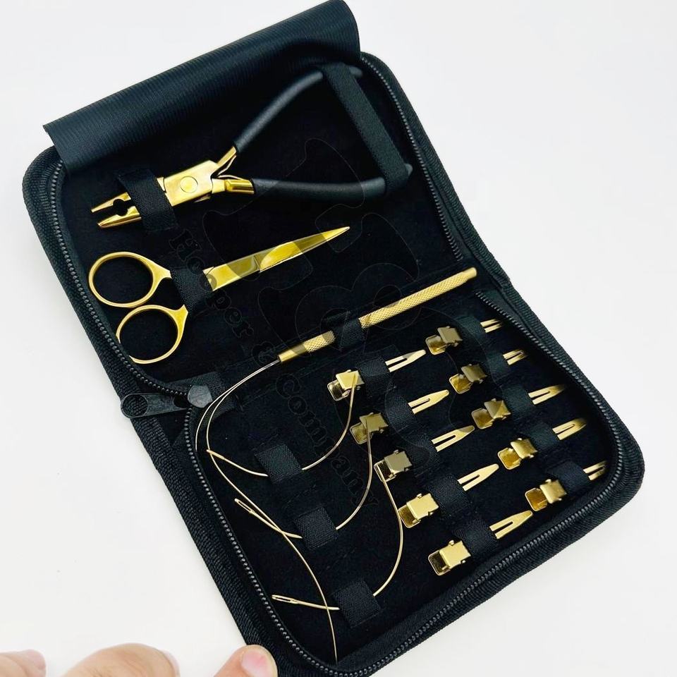 New Arrivals Hair Extension Tools Kit Loop Hook Hair Extension Kit Clips Box Threads Shape Needles Stainless Steel Plier logo