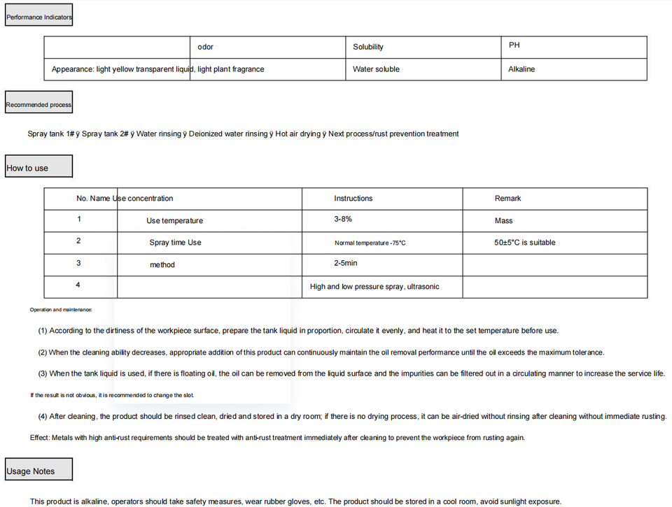 Application:nonferrous metals industrial grease cleaner