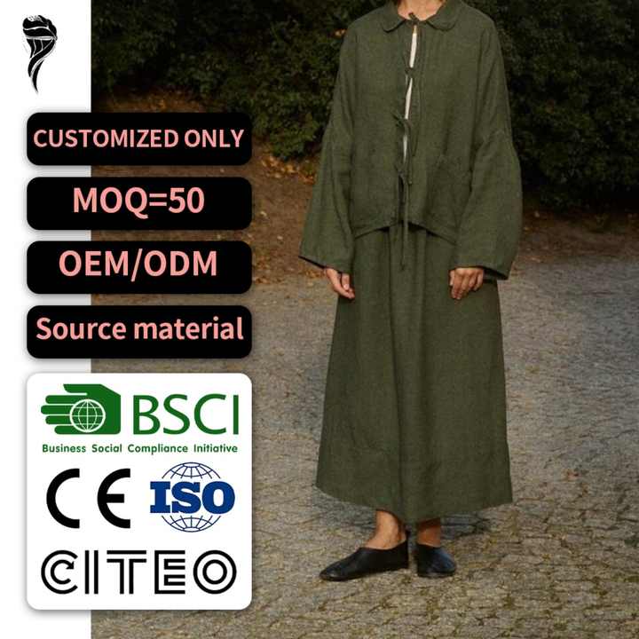 Nouveautés : Ensemble en lin modeste pour femme, de haute qualité, avec logo personnalisé, vêtements décontractés, mélange de lin, costume élégant pour femme
