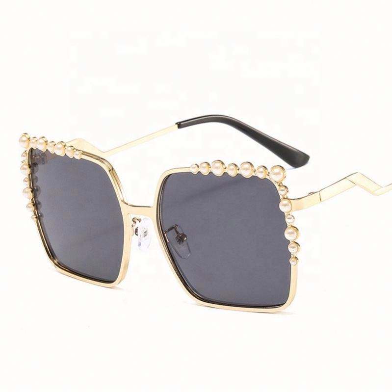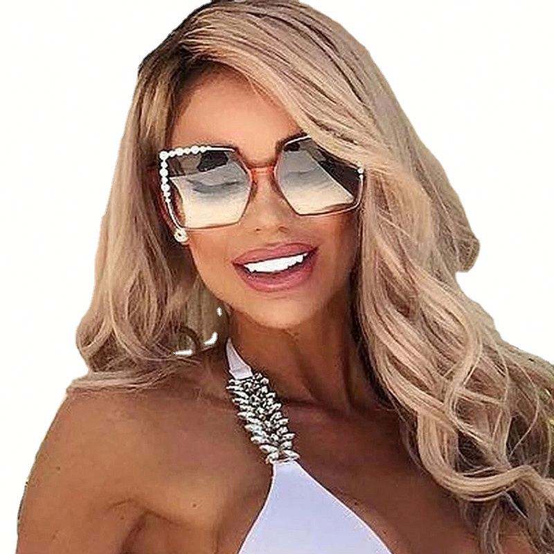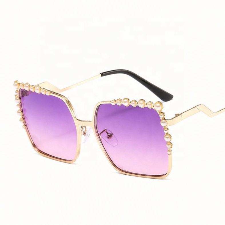 Nouveautés Lunettes de soleil de luxe de haute qualité à dégradé de couleurs pour femmes, lunettes de soleil surdimensionnées en métal, UV400, lunettes de soleil carrées en perles pour femmes 2021