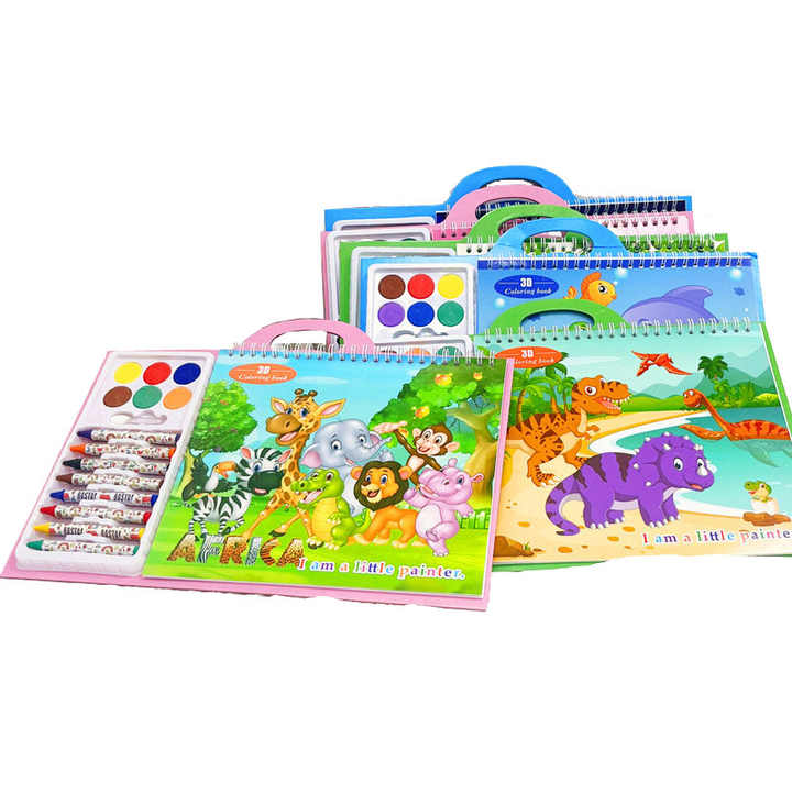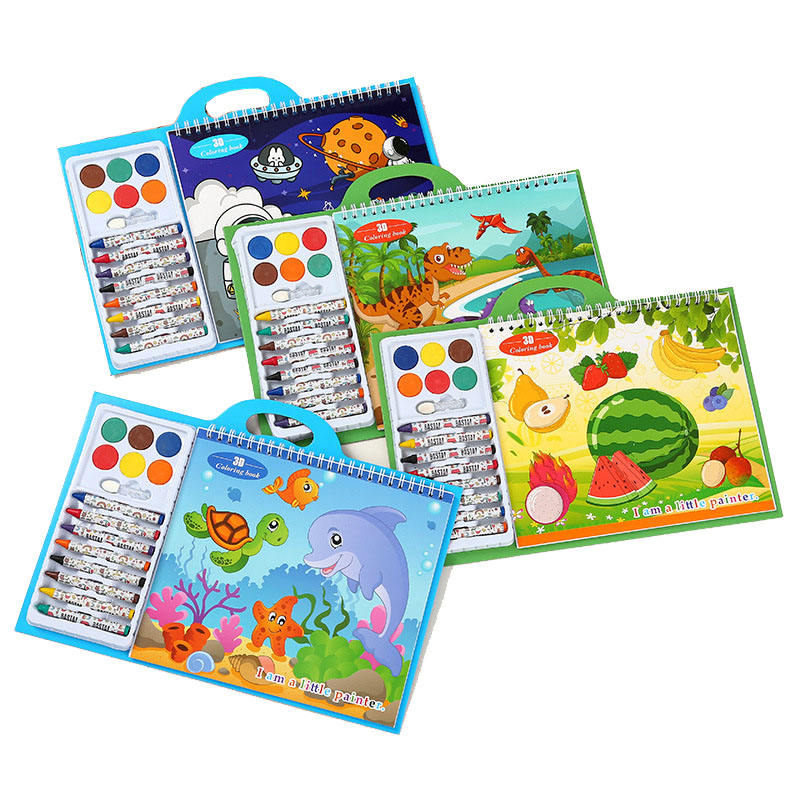 Nouveautés Livre de coloriage à l'eau magique Ensemble de papeterie de peinture pour enfants Livre de croquis de dessin animé avec peinture aquarelle et crayon